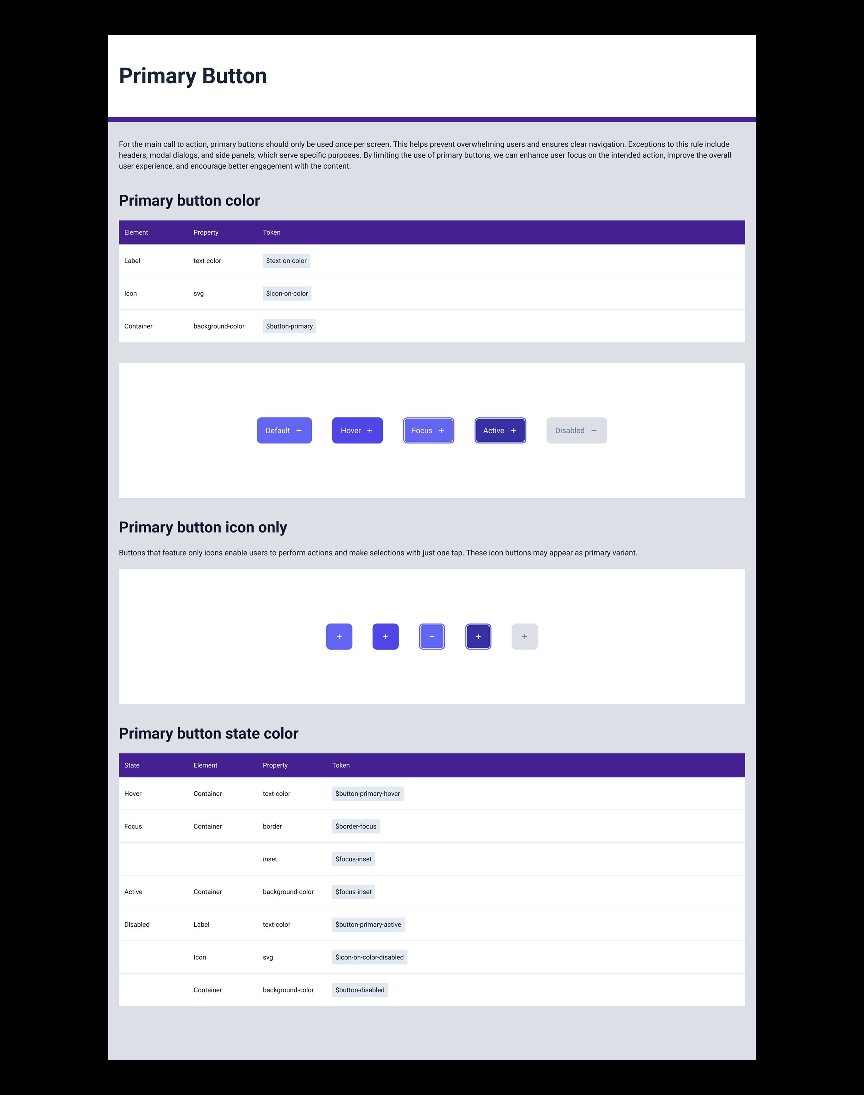 - Partnered with engineering to align Figma with front-end architecture and initiate a coded component library.