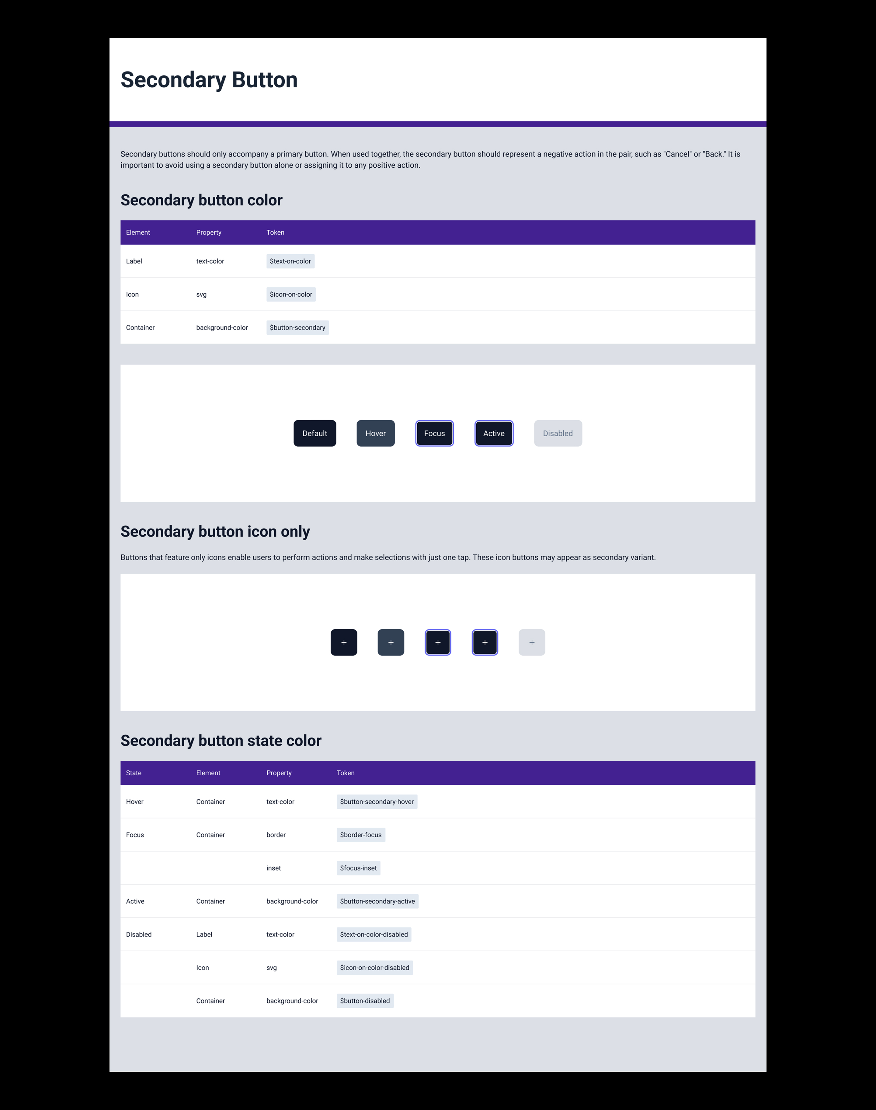 - Partnered with engineering to align Figma with front-end architecture and initiate a coded component library.