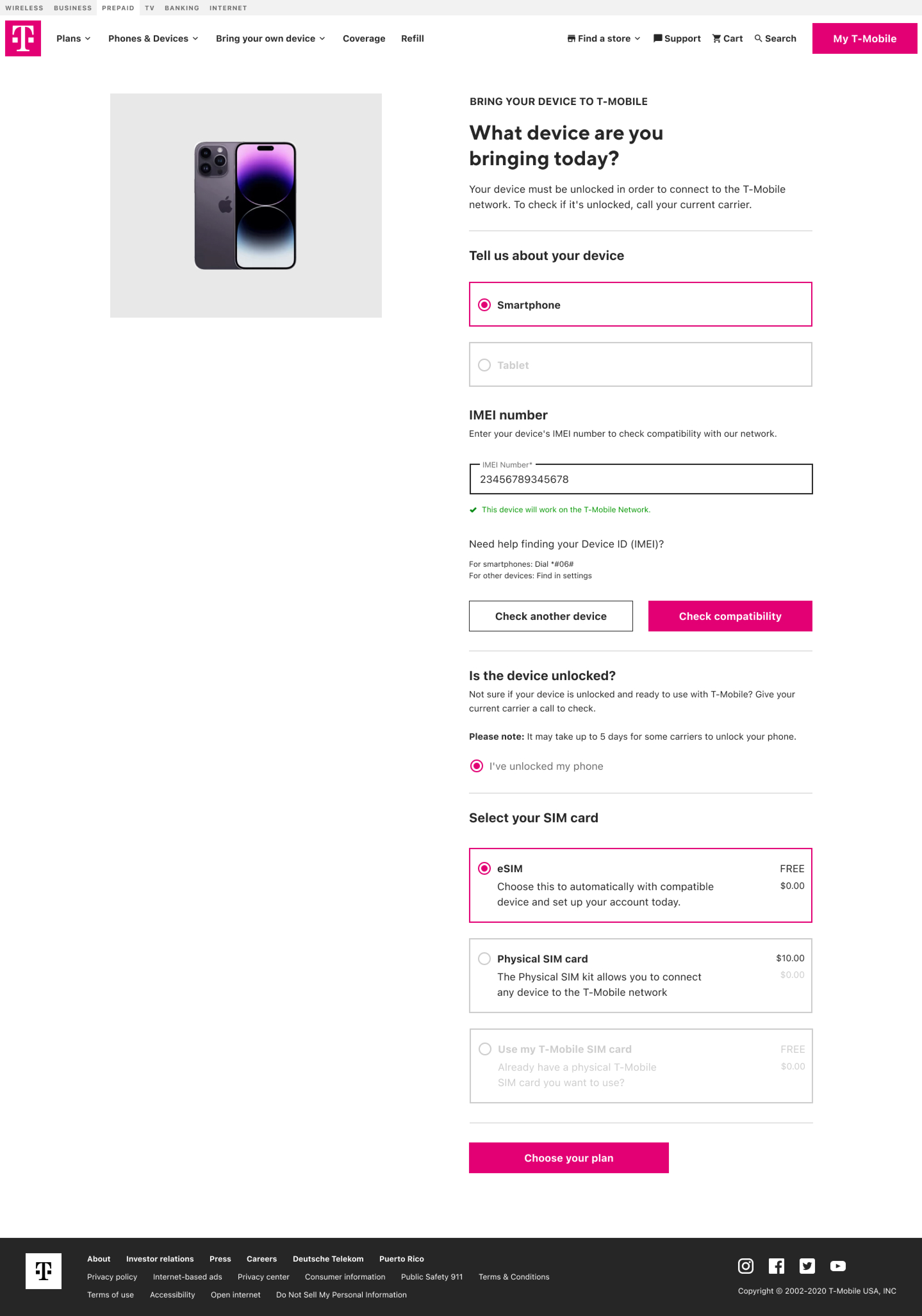 Implemented device verification and real-time plan comparisons to enhance purchasing decisions. Optimized processes for various customer profiles to improve responsiveness and reduce checkout friction.